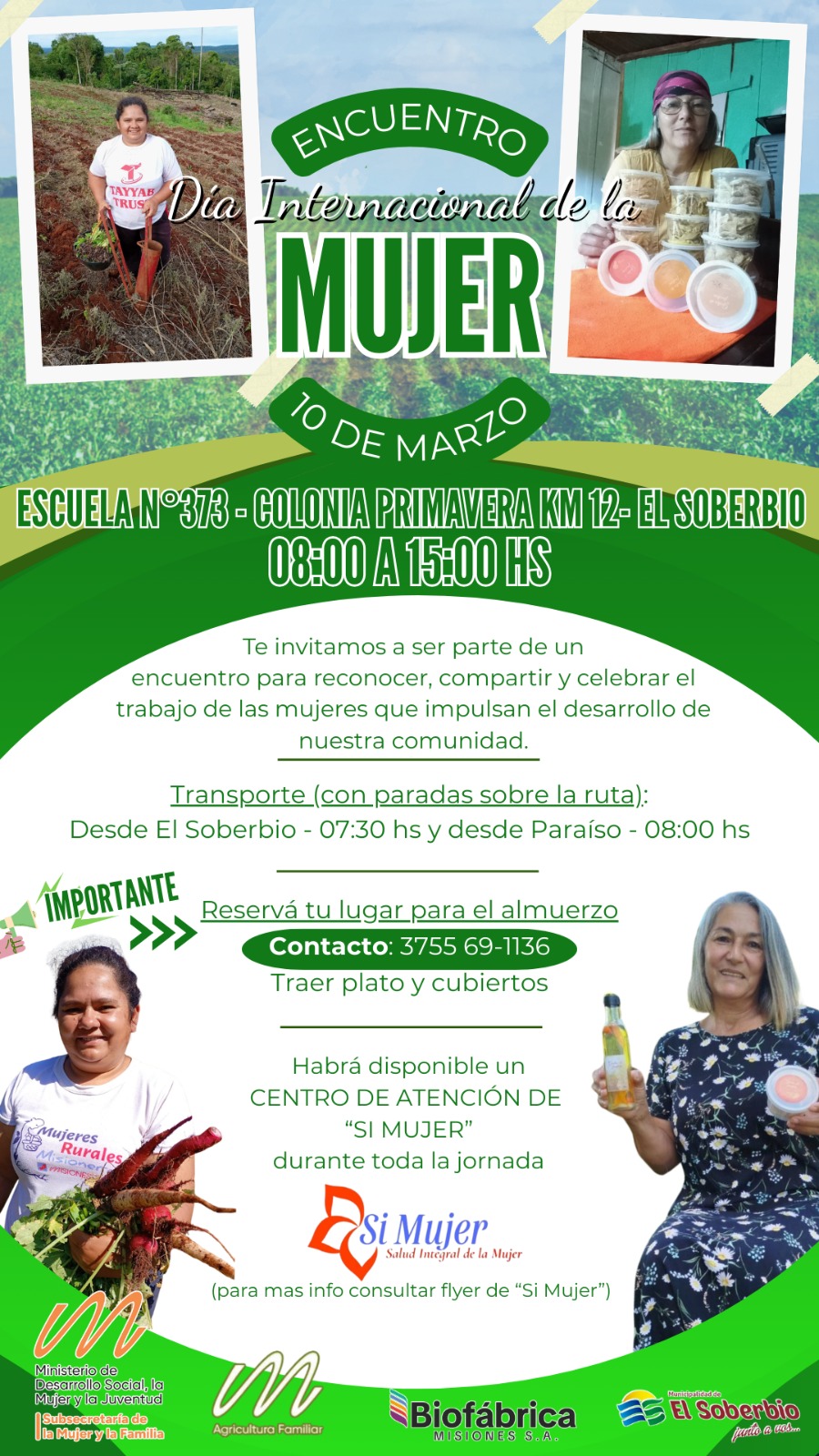 La actividad es impulsada de manera conjunta por el Ministerio de Desarrollo Social, la Mujer y la Juventud de Misiones, la Subsecretaría de la Mujer y la Familia de Misiones, el Ministerio de Agricultura Familiar de Misiones, Biofábrica Misiones S.A. y la Municipalidad de El Soberbio.